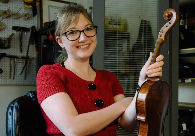 Having studied sculpture and viola performance from an early age, it quickly became apparent Katherine is a natural at the bench when she started working part time at a local violin shop while attending college in 2015. Now a full-time violin repairer & restorer, Katherine is excited to start making her very first violin and viola on her own, delving deeper into violin restoration techniques, and connecting with other female luthiers to keep growing together in the field of lutherie.